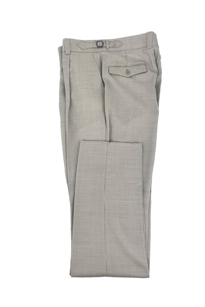Tiglio Luxe Marbella semi wide leg fit pants feature single pleat and made with extra fine wool fabrics. This pant style is unique in containing a longer waistband, side adjusters, and internal suspender buttons. These features allow you to style the pants with either a belt, or with suspenders. Marbella is made in a semi wide leg fit, to convey luxury and comfort.