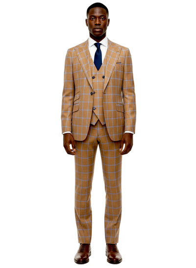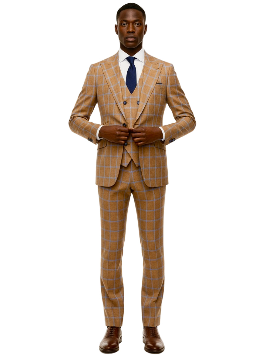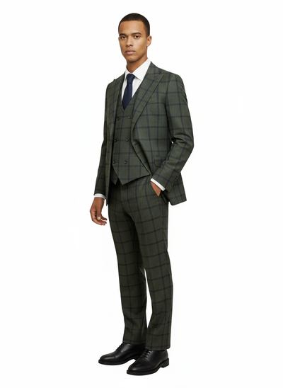 Dark Blue with Cobalt Windowpane Pistoia, Modern Fit Pure Wool Men’s Suit by Tiglio Luxe