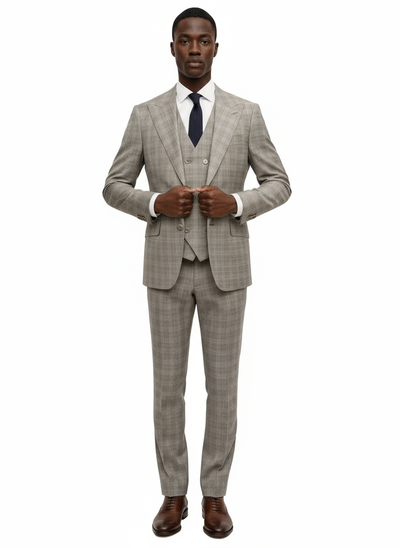 Orveitto Compose Suit and Vest features a One Button jacket, slanted flap pockets, and double breasted vest.