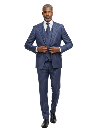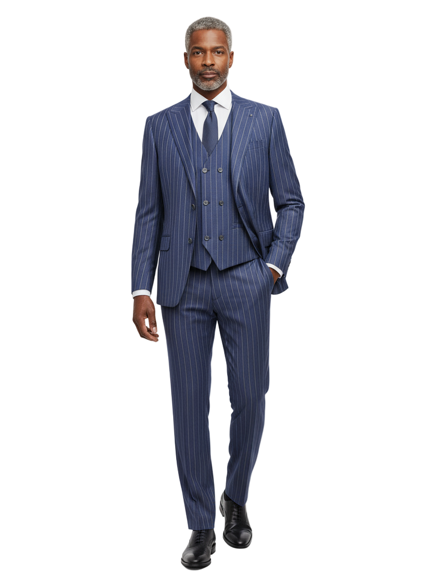 Navy with Tan Pinstripe Tiglio Luxe Prosecco, Modern Fit Pure Wool Suit & Vest