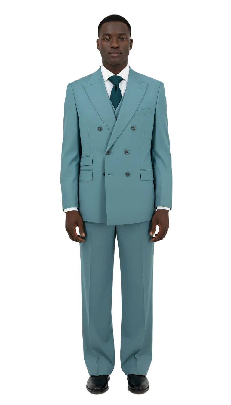 This Suit and Vest features the Marbella pant, which is single pleat, semi wide leg, has a longer waistband, side adjusters, and internal suspender buttons.